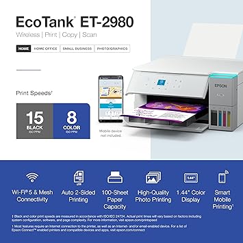 Epson EcoTank ET-2980 Wireless All-in-One Color Supertank Printer with up to 3 Years of Ink