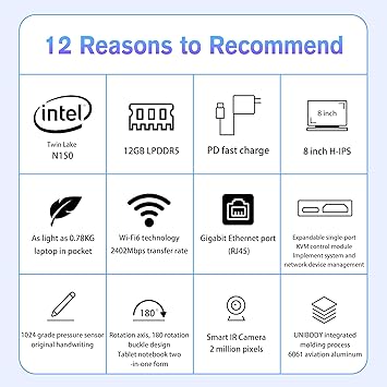 8 inch Mini Laptop N150 Touchscreen Notebook Tablet 2 in 1 Handheld Computer Portable Small Pocket PC Win-11 Pro