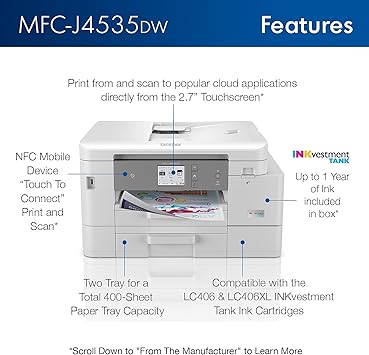 Brother MFC-J4535DW INKvestment -Tank All-in-One Color Inkjet Printer with NFC