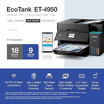 Epson EcoTank ET-4950 Wireless All-in-One Color Supertank Printer with up to 3 Years of Ink